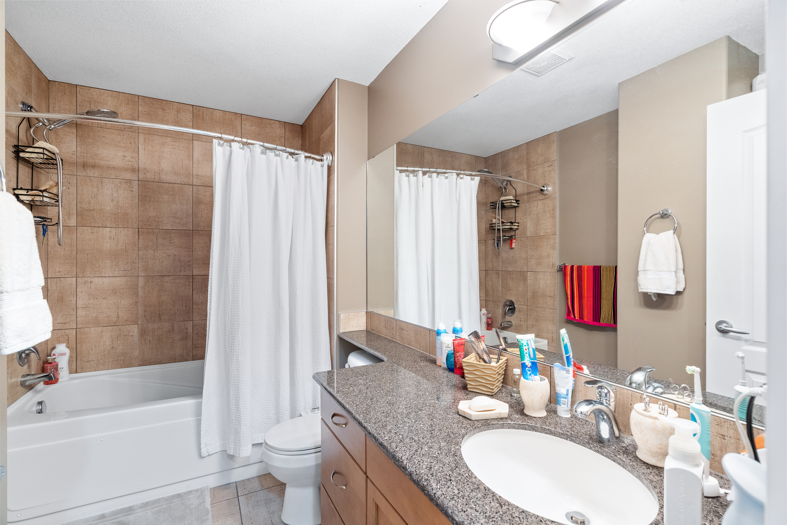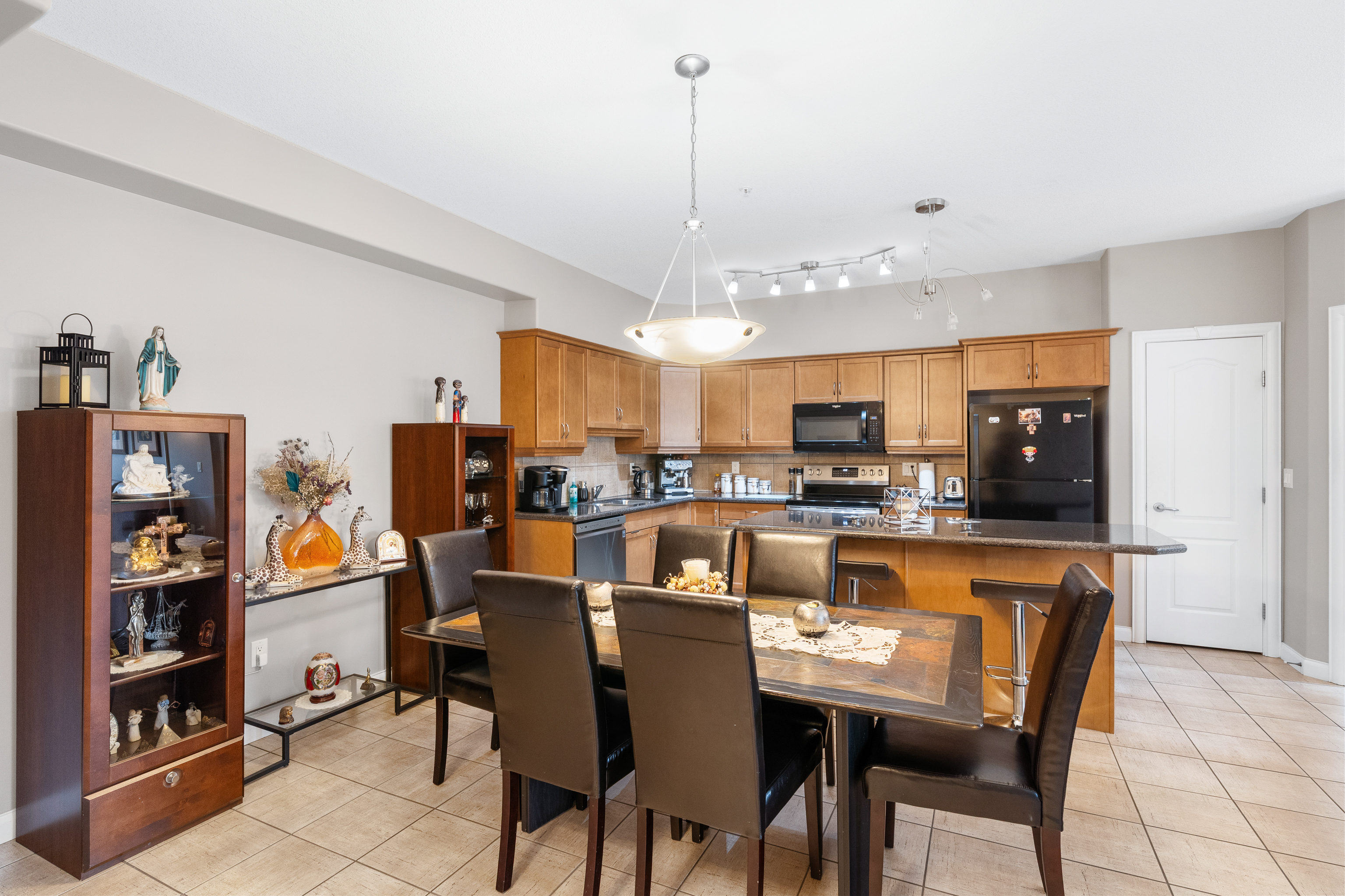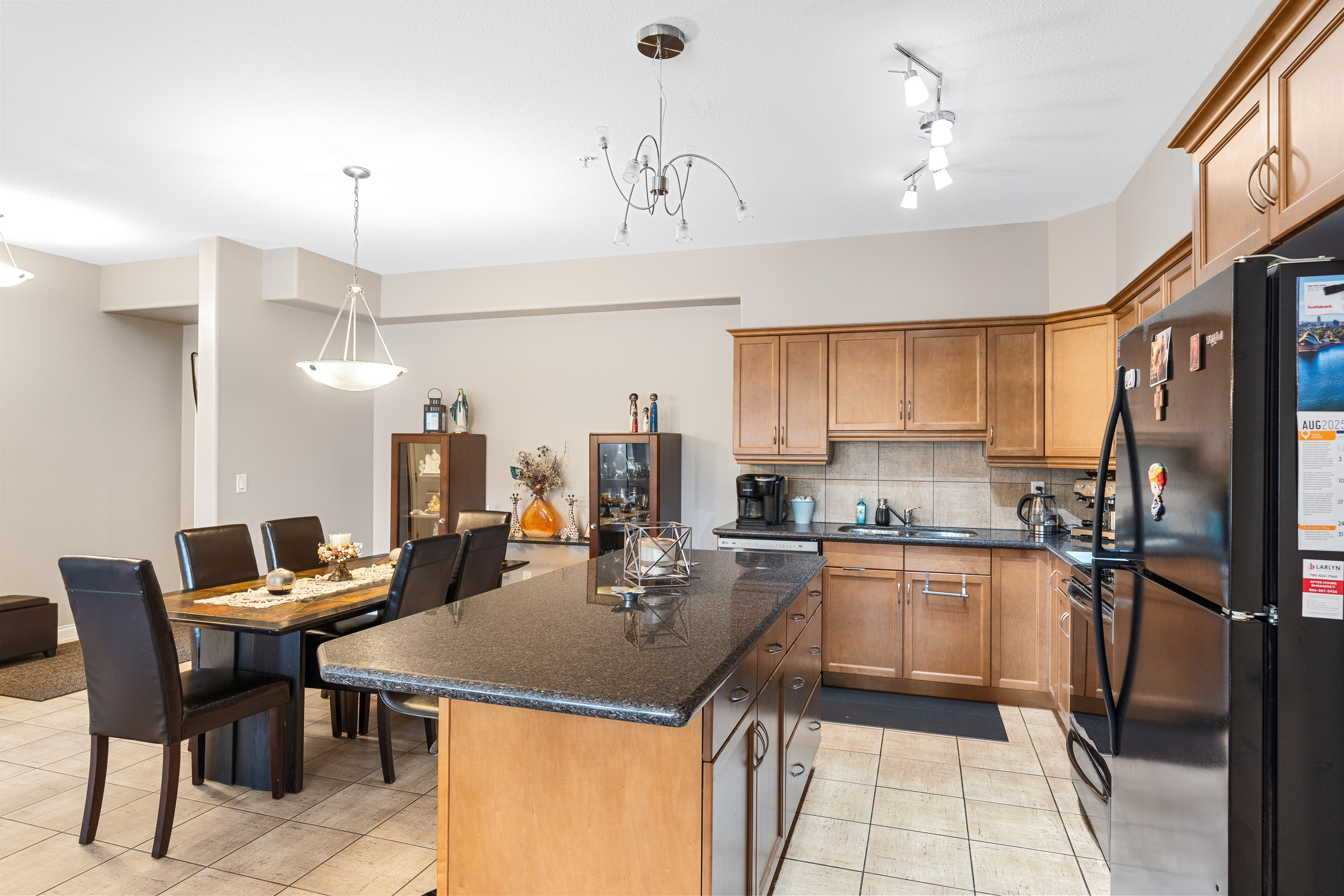 Inside, you’ll find quality finishes throughout, including granite countertops, high-end cabinetry, stainless steel appliances, and in-suite laundry. The open-concept layout seamlessly connects the kitchen, dinette, and living room, creating an inviting space for everyday living or entertaining.
