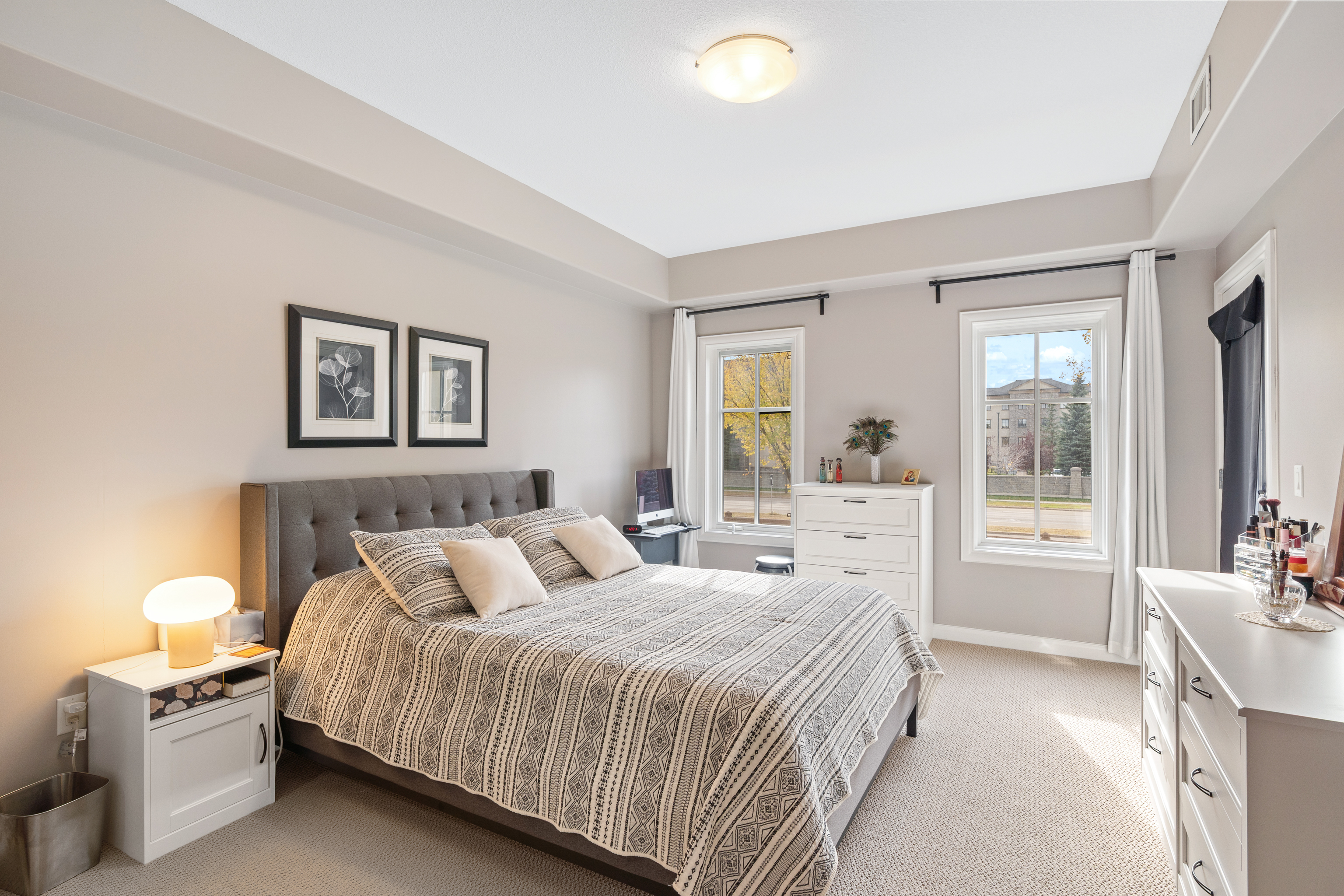 This quiet, adult-only building (21+) offers an impressive array of amenities: a fitness centre, swirl pool, steam room, sauna, party room with BBQ area, media lounge, and theatre. Enjoy the best of both convenience and nature with nearby ravine trails and easy access to Anthony Henday Drive, Whitemud Drive, and the airport.